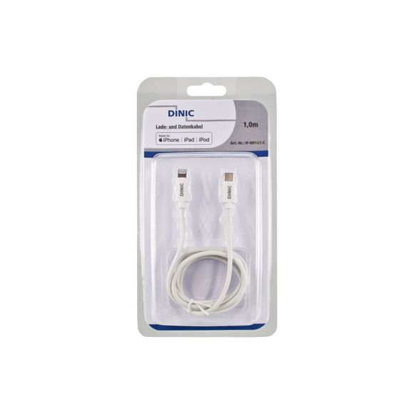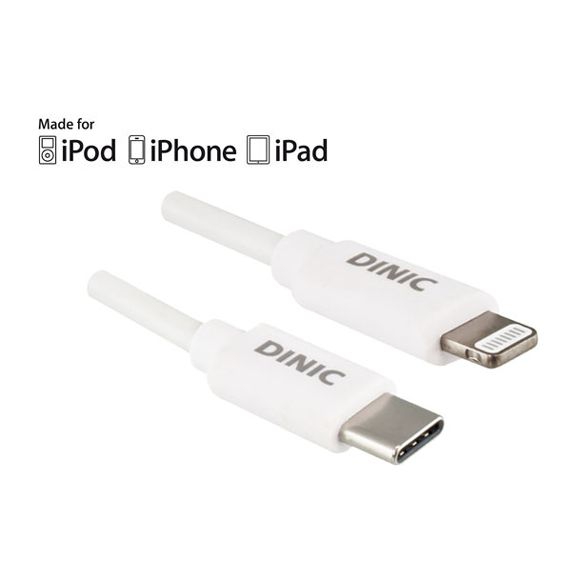 Cable USB C to Lightning, 1m, MFi certified (Made for ... iPhone, iPad"), for data transfer and recharging, wight