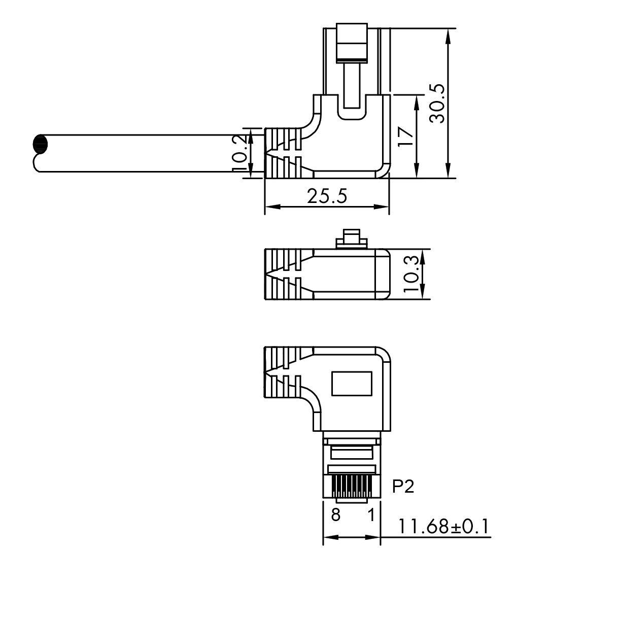 Cat.6A network cable 1x RJ45 angled LEFT, 1m