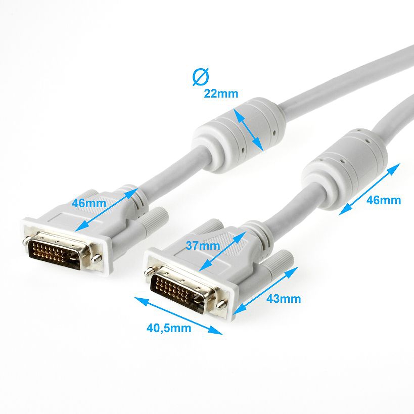 DVI monitor cable, DVI-D DUAL LINK, only digital, 24+1 on both ends, 2m, colour: grey