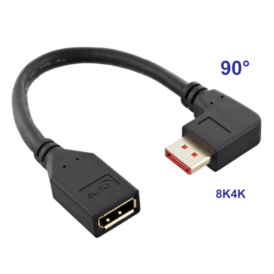 DisplayPort™ extension with 90° RIGHT ANGLED plug, 8K4K, DisplayPort™ 1.4 specification, male/female, gold-plated contacts, length approx. 15cm