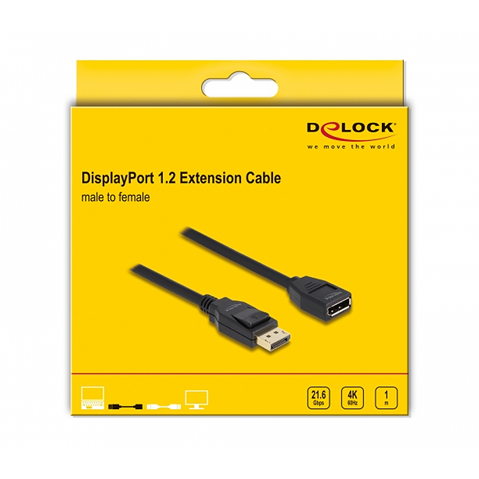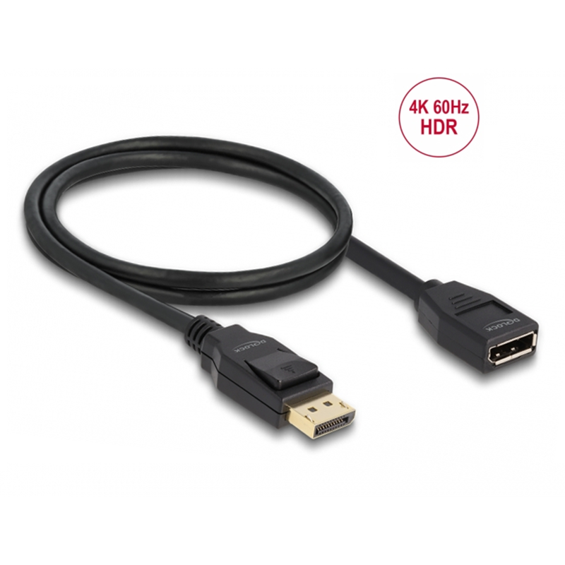 DisplayPort™ extension, 1m, 20-pin DisplayPort™ plug with locking mechanism to 20-pin DisplayPort™ socket, resolution up to 3840 x 2160 @ 60 Hz (4K)