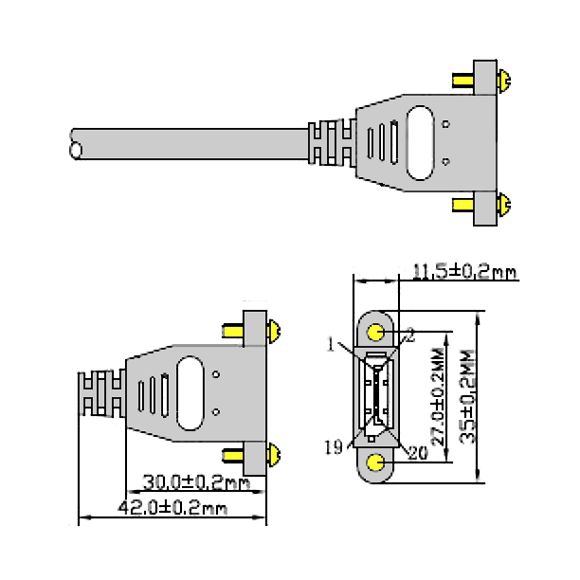 - 1x DisplayPort™ Socket, screw-on (20 pin, female)