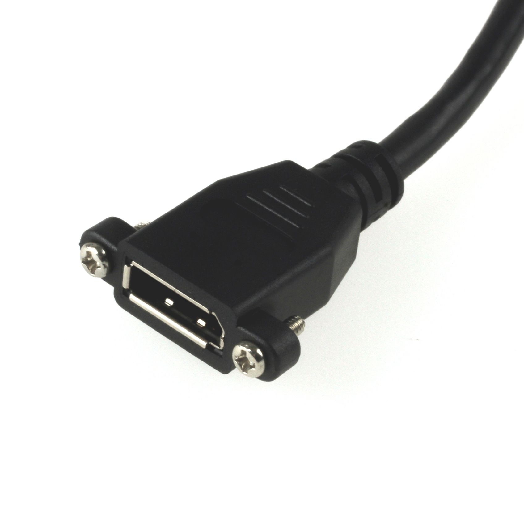 DisplayPort panel mount cable, DP female with screws to DP male, 1m