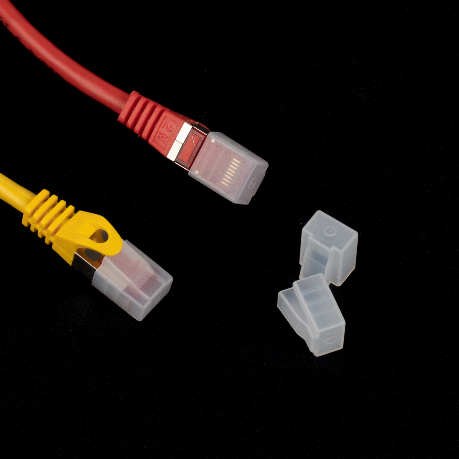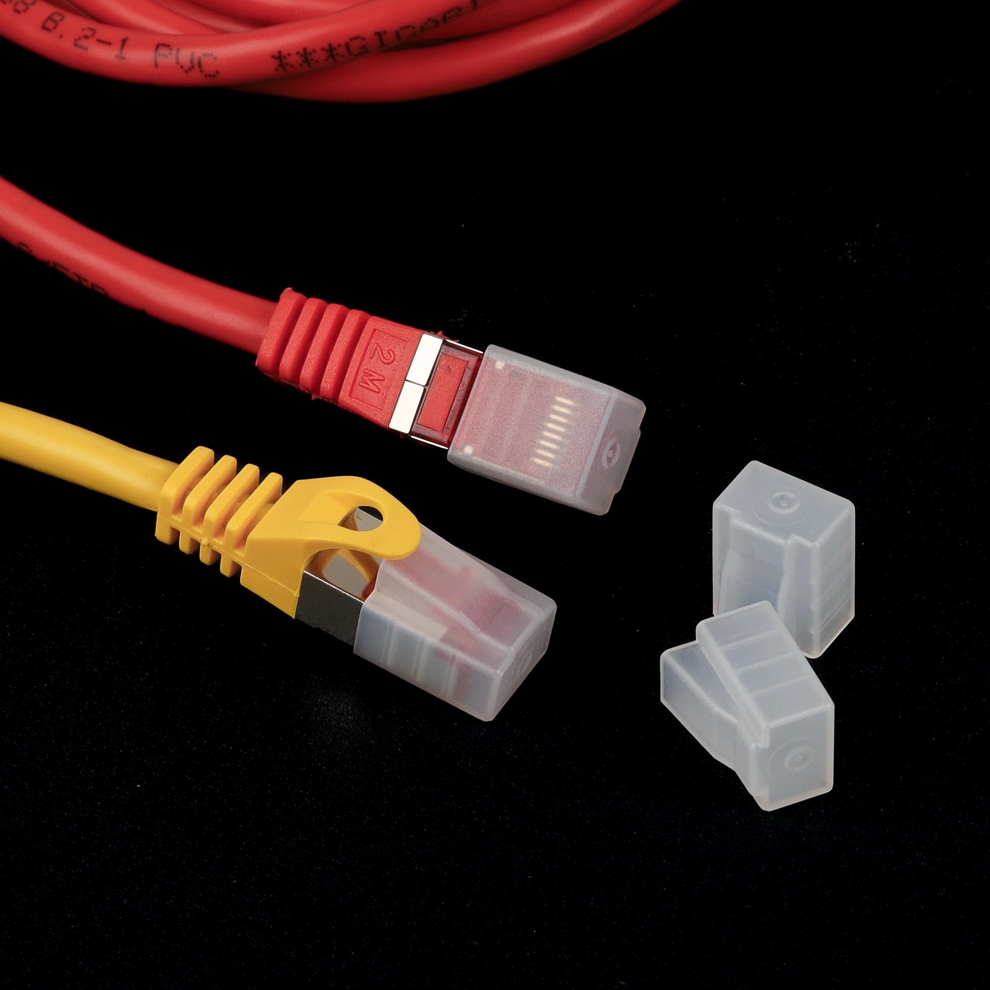 Dust protection caps for RJ45 male (ethernet or ISDN plugs), bag with 50pcs, colour: white transparent