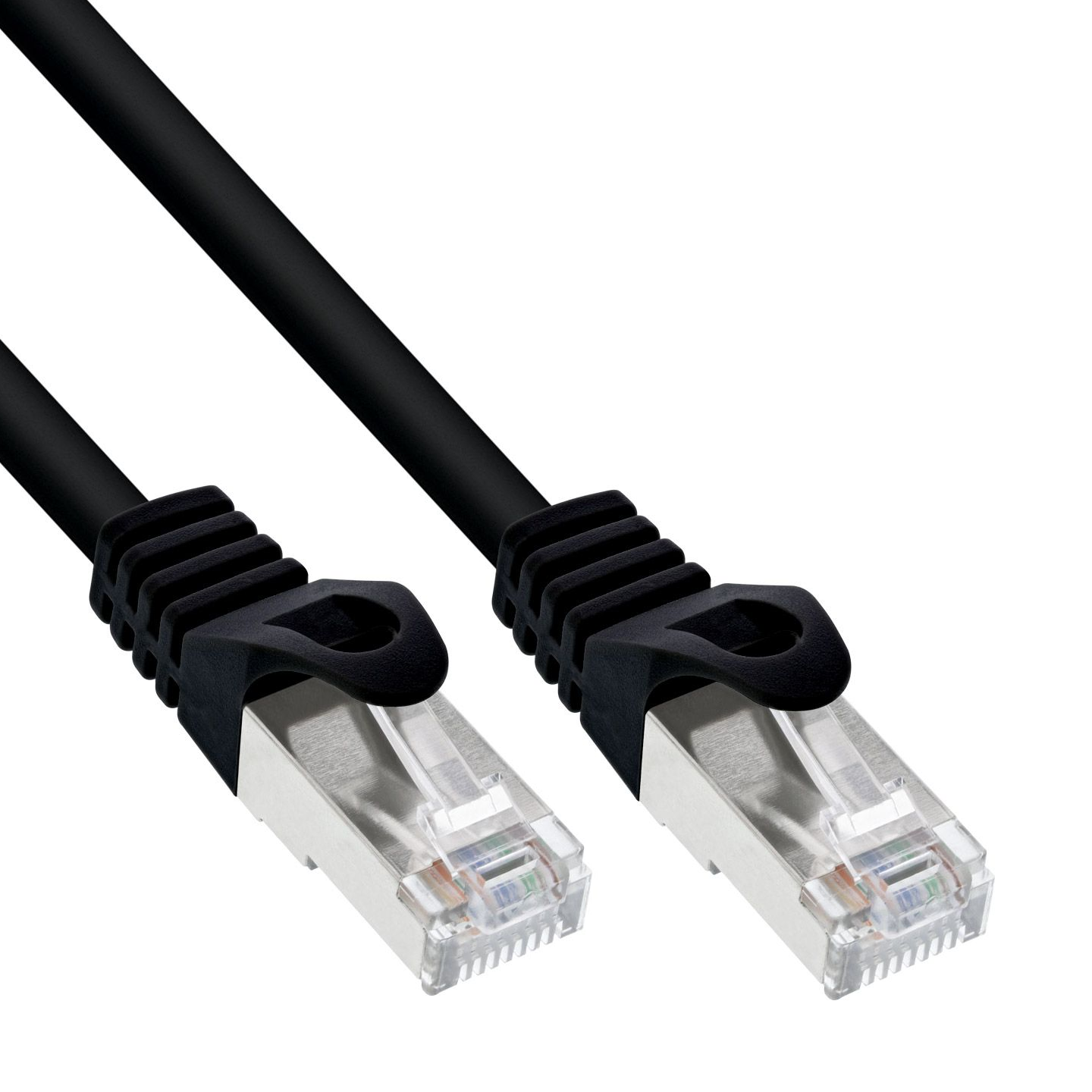Ethernet patch cable 25cm, colour: black, Cat.5e, SFTP, for 10/100/1000 MBit/s networks, 2x RJ45 plug (1:1 connection)