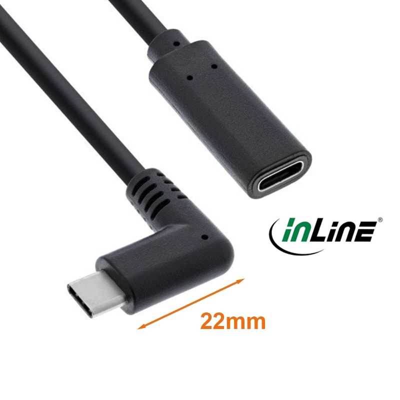 Extension cable USB Type-C™ male angled to C female, 3A, 50cm