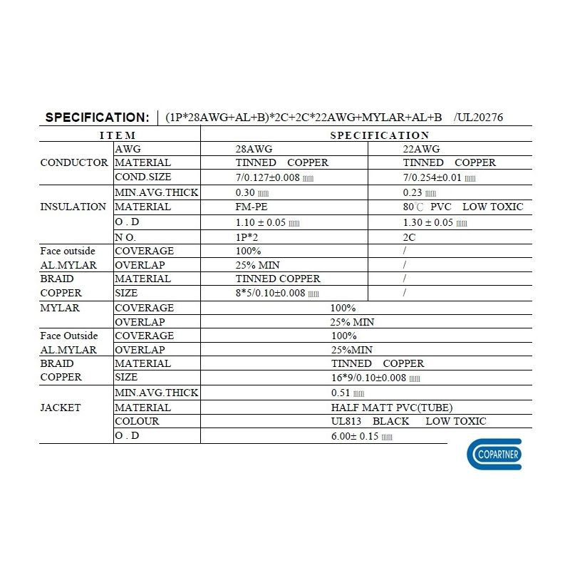- spezifikation: (1P*28AWG+AL+B)*2C+2C*22AWG+MYLAR+AL+B /UL20276
