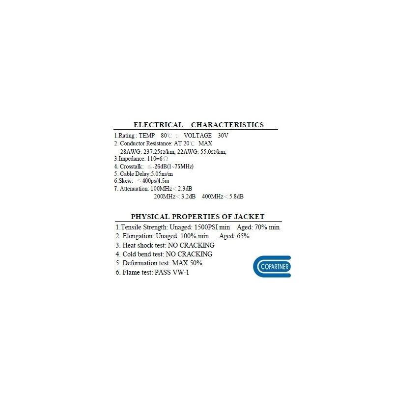 - UL cable material / labelling e.g.: E119932 AWM 20276 80°C 30V VW-1 COPARTNER