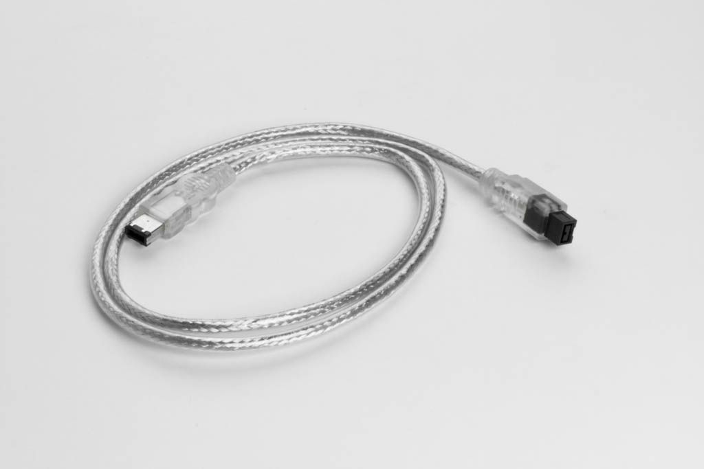 Firewire cable 9-pin to 6-pin, 1m, high quality, 400 MBit/s (for IEEE-1394a, i.Link, DV, S400, Firewire 400), colour: silver translucent