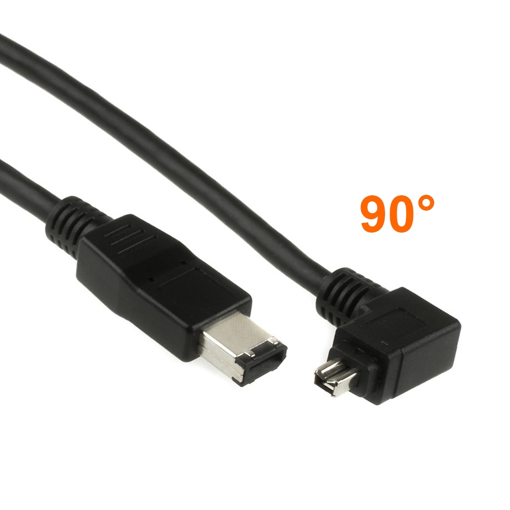 This firewire cable, which was specially manufactured for us, has a 4 pin and a 6 pin plug. The special feature is the 4 pin plug angled to the left. This makes the cable particularly suitable for use in confined spaces at the 4 pin Firewire port. In addition, the angled plug can be much better fixed with adhesive tape to prevent it from slipping out than a straight plug.