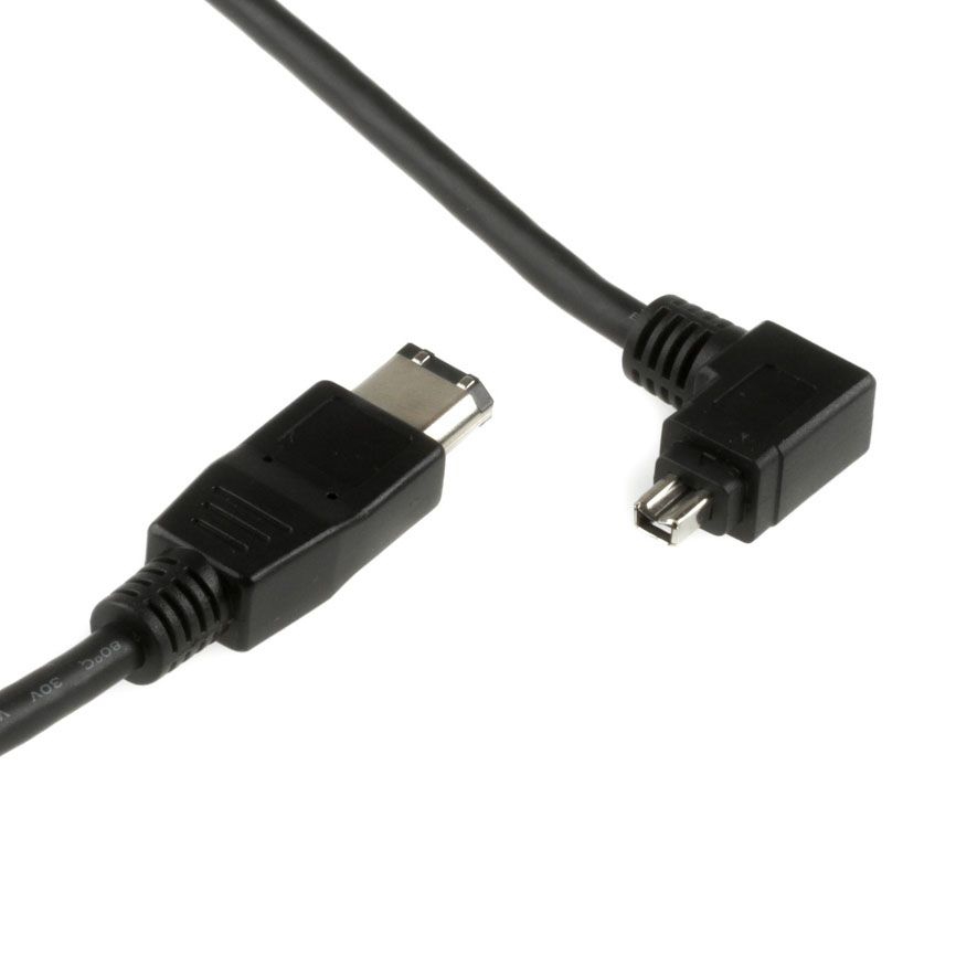 This firewire cable, which was specially manufactured for us, has a 4 pin and a 6 pin plug. The special feature is the 4 pin plug angled to the left. This makes the cable particularly suitable for use in confined spaces at the 4 pin Firewire port. In addition, the angled plug can be much better fixed with adhesive tape to prevent it from slipping out than a straight plug.
