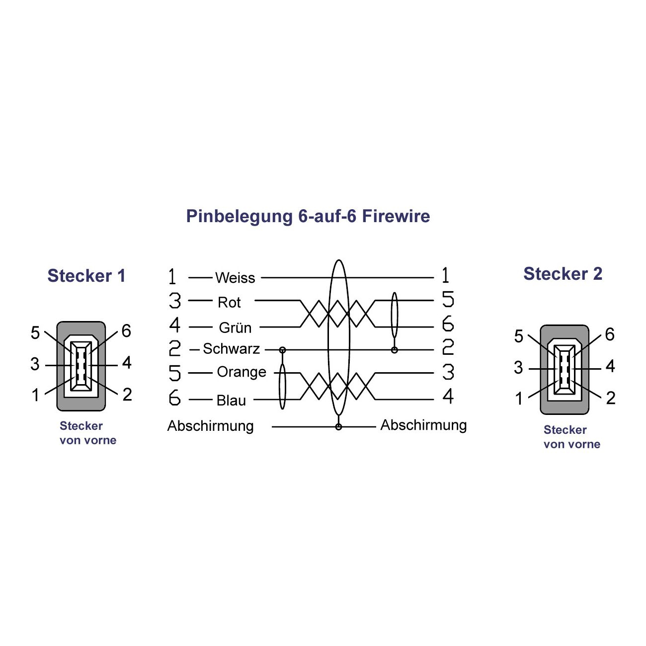 Firewire cable 6-to-6 1x right angled LEFT 3m