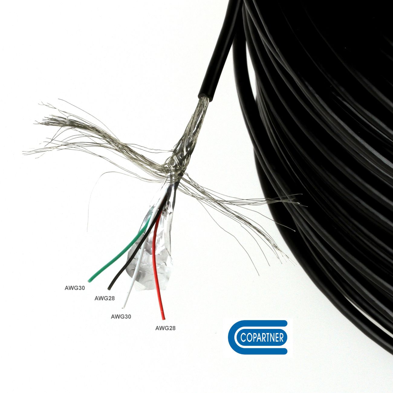 Flexible USB 2.0 cable material, OD only 3mm, roll of 100m, colour: black, for USB 2.0 and USB 1.1