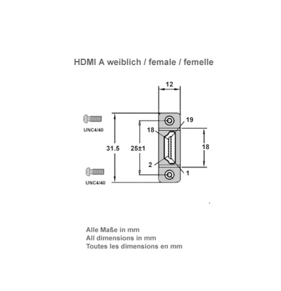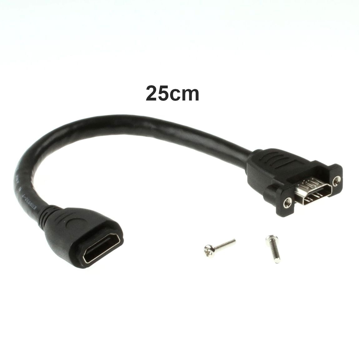 HDMI mounting cable (feedthrough), 2x HDMI female, with short cable 25cm, screws included, compatible with HDMI High Speed with Ethernet
