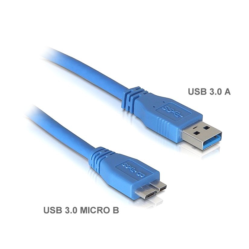 USB 3.0 micro cable: plug USB3 A male to USB3 Micro B male, 2m, USB 3.0 compatible (Super Speed Mode), colour: blue