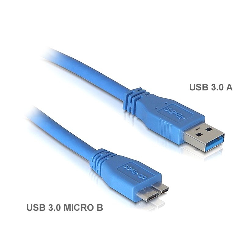 USB 3.0 micro cable: plug USB3 A male to USB3 Micro B male, 3m, USB 3.0 compatible (Super Speed Mode), colour: blue