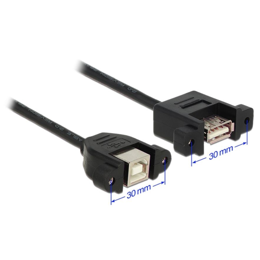 Mountable USB 2.0 cable, A female (with screws) to B female (with screws), length 1m, double shielded, compatible USB High Speed (max. 480 MBit/s), screw distance 30mm