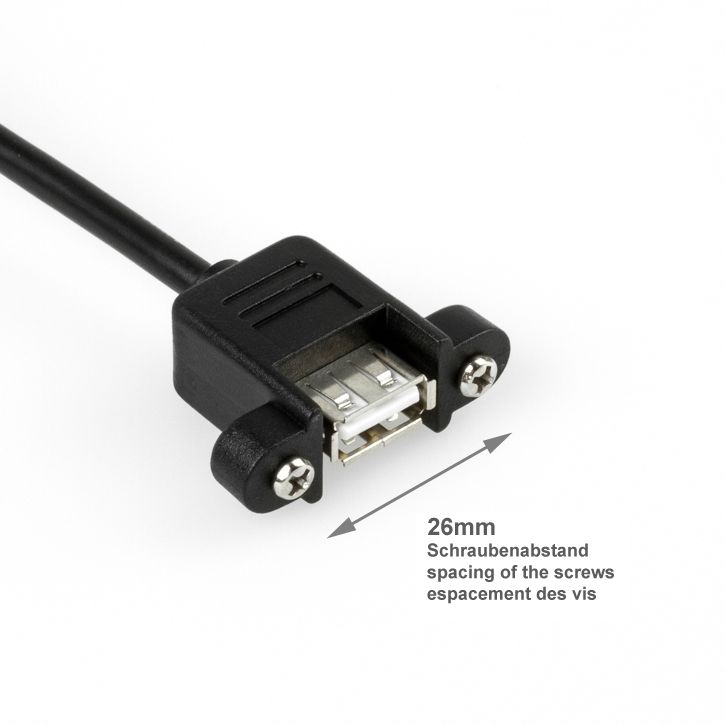 Mountable USB 2.0 cable A female with 2 screws to A male 50cm
