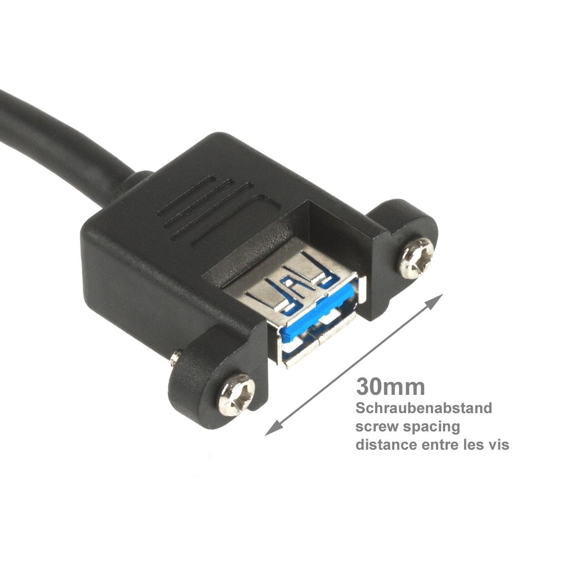 Mountable USB 3.0 cable A female with screws to A male 2m (screw spacing 30mm)