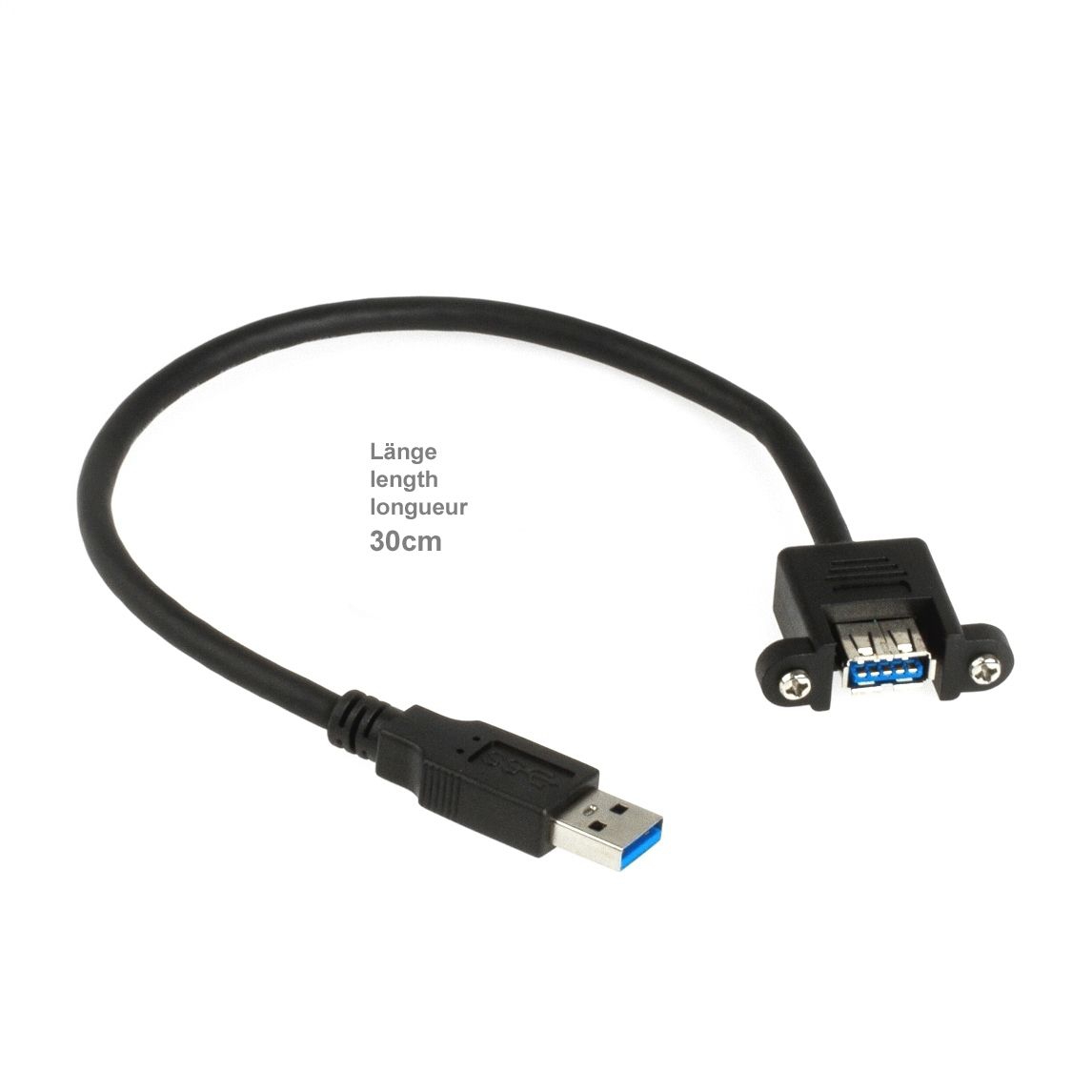 Mountable USB 3.0 cable A female with screws to A male 30cm (screw spacing 30mm)