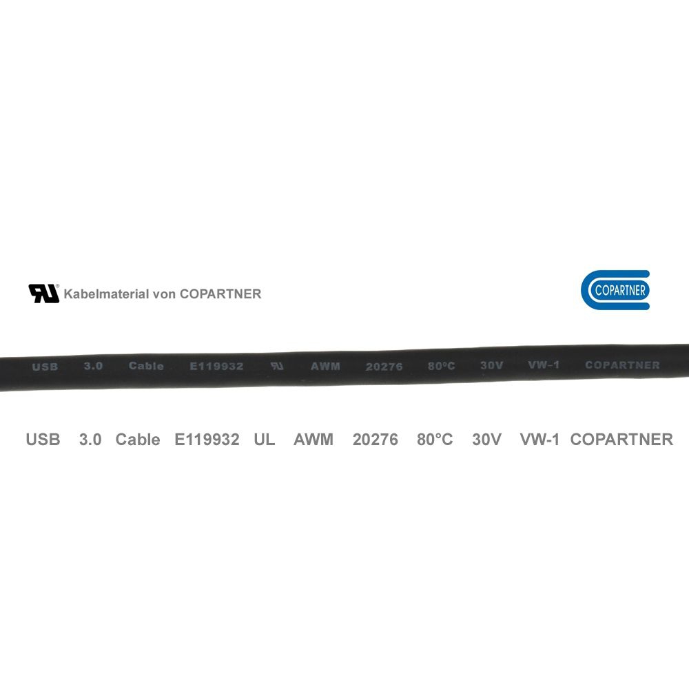 Mountable USB 3.0 cable, 30cm, for industrial applications, A female (mountable with 2 screws) to A male, USB 3.0 Super Speed, screws included