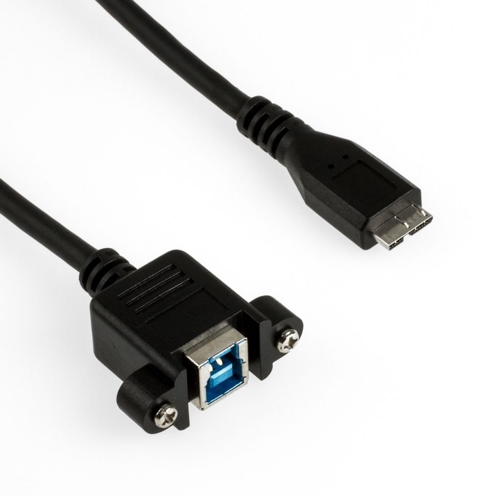 Mountable USB 3.0 cable, 1m, for industrial applications, USB3 B female (mountable with 2 screws) to USB3 Micro B male, USB 3.0 Super Speed, screws included