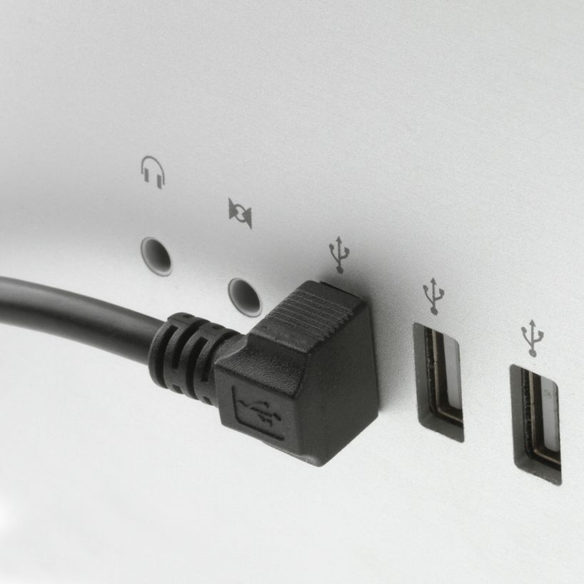 - 2nd connector: USB 2.0 type A male angled 90° DOWN as a space-saving solution