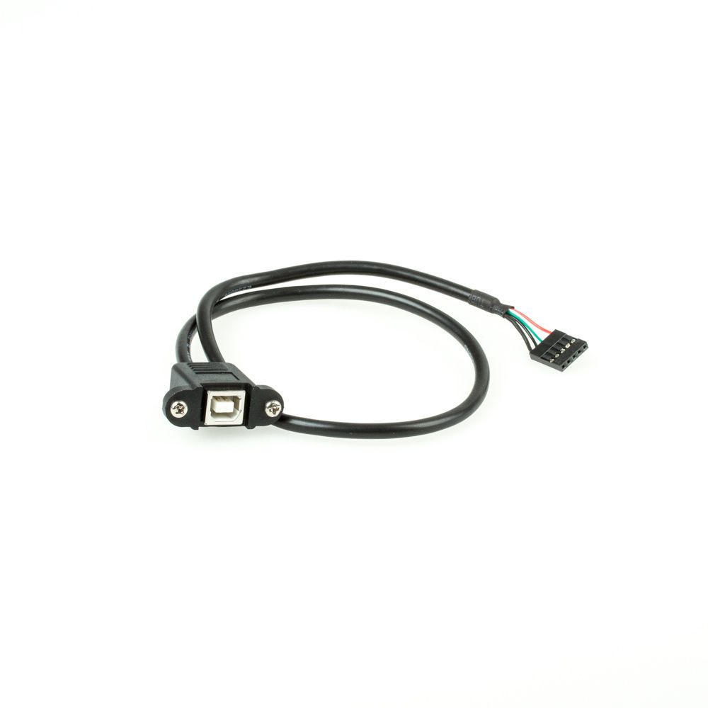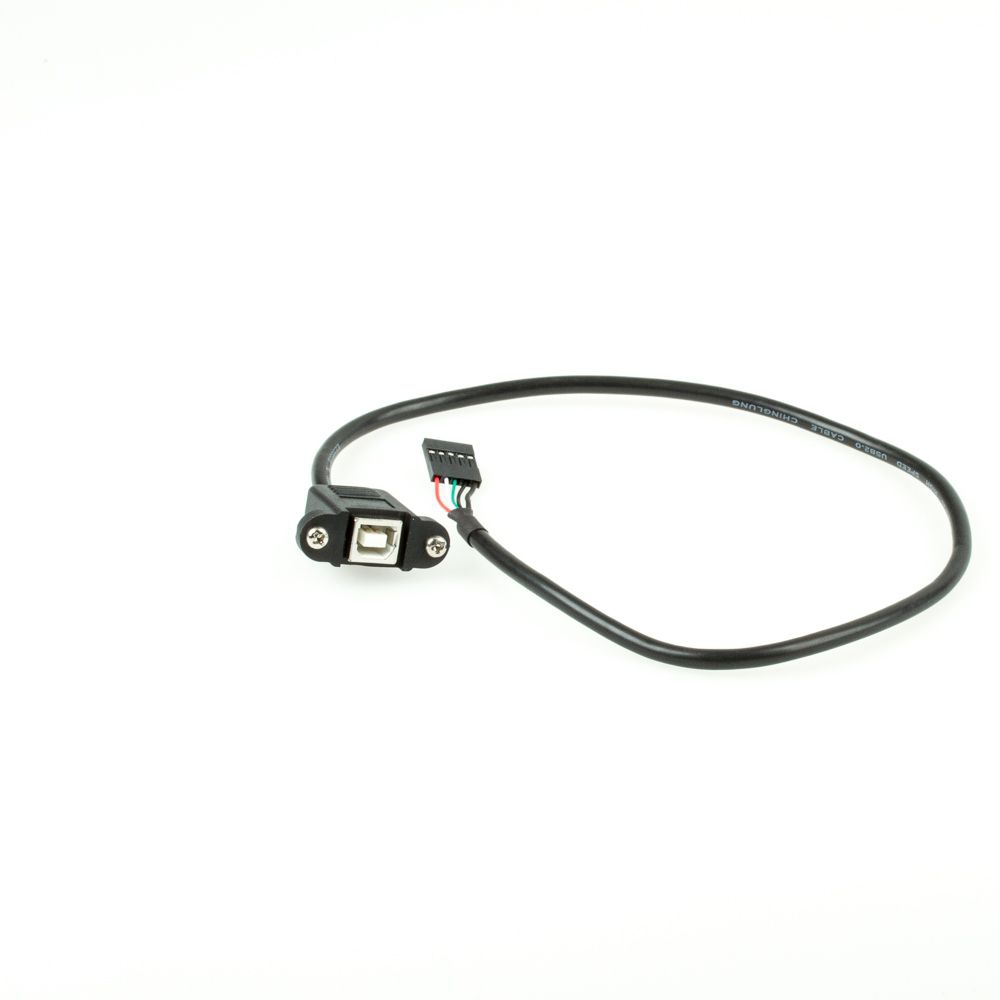 Mountable USB cable for industrial applications: female connector type B (mountable with 2 screws) to board connector (5-pin version, grid 2.54mm), 50cm, double shielded, twisted pair, for USB 1.1 und USB 2.0 (up 480 MBit/s)