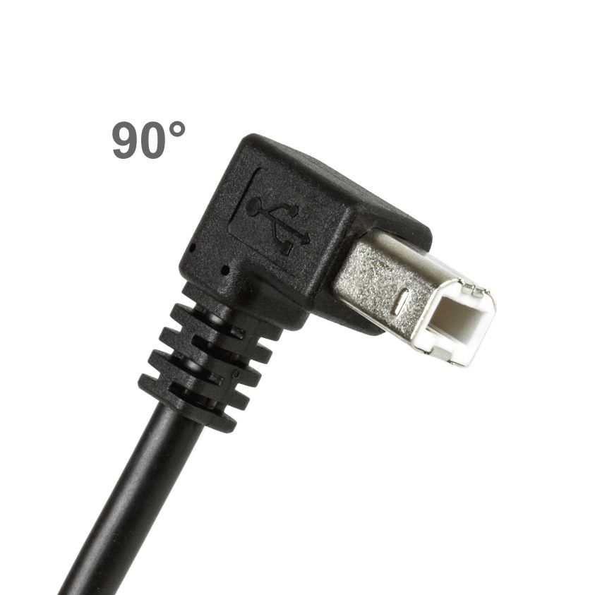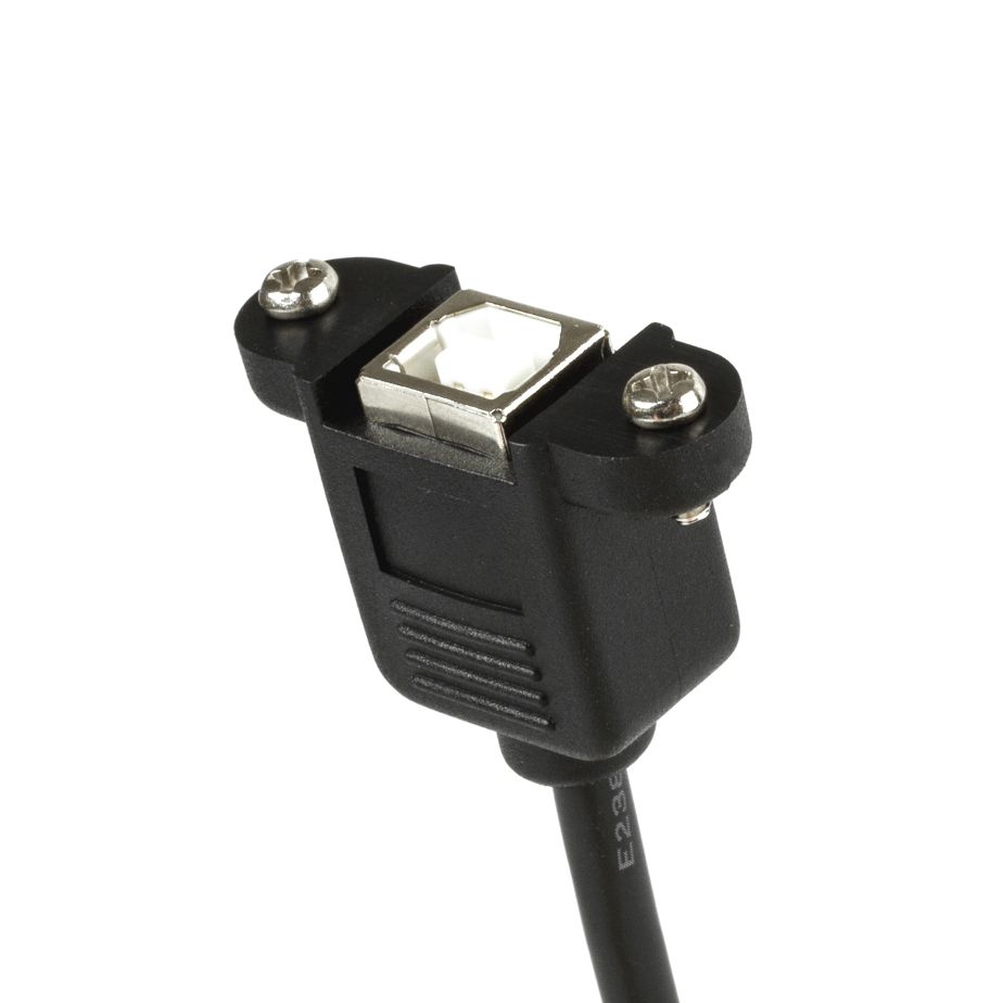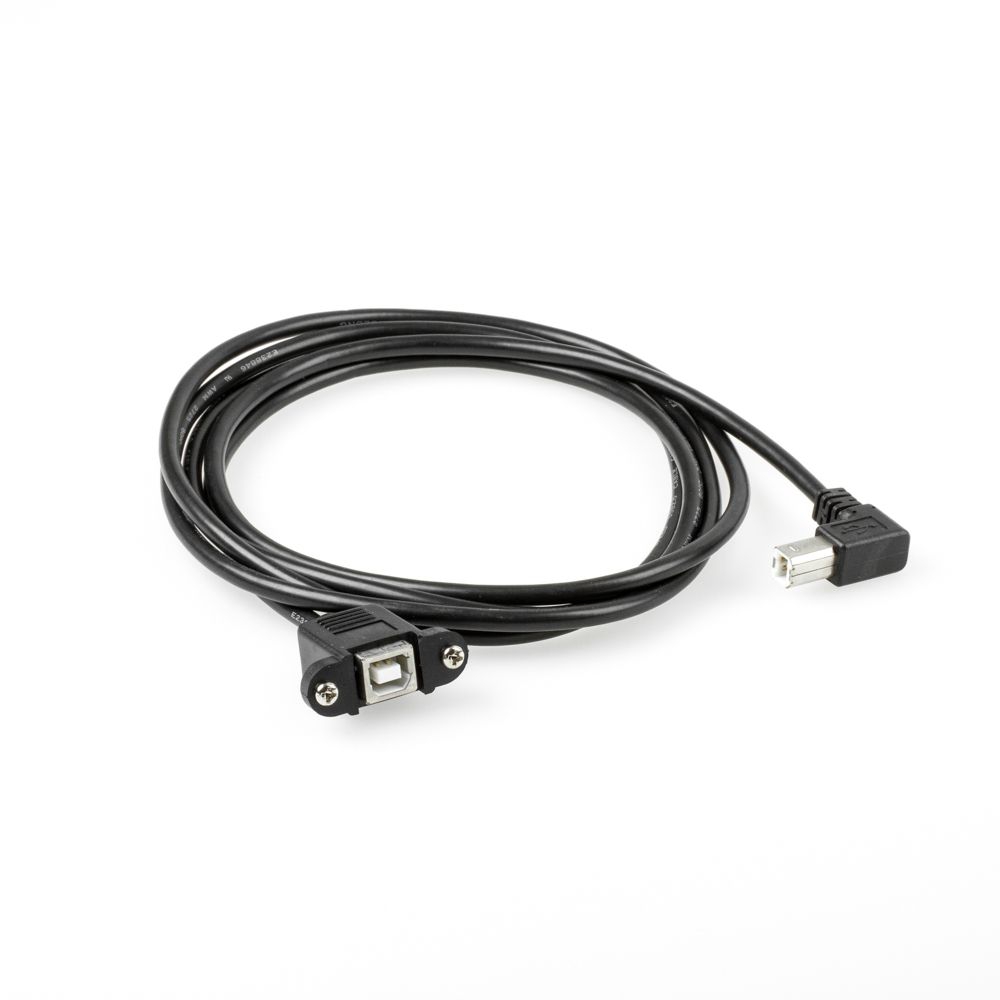Mountable USB cable B female with 2 screws to B male 90° ANGLED DOWN 2m