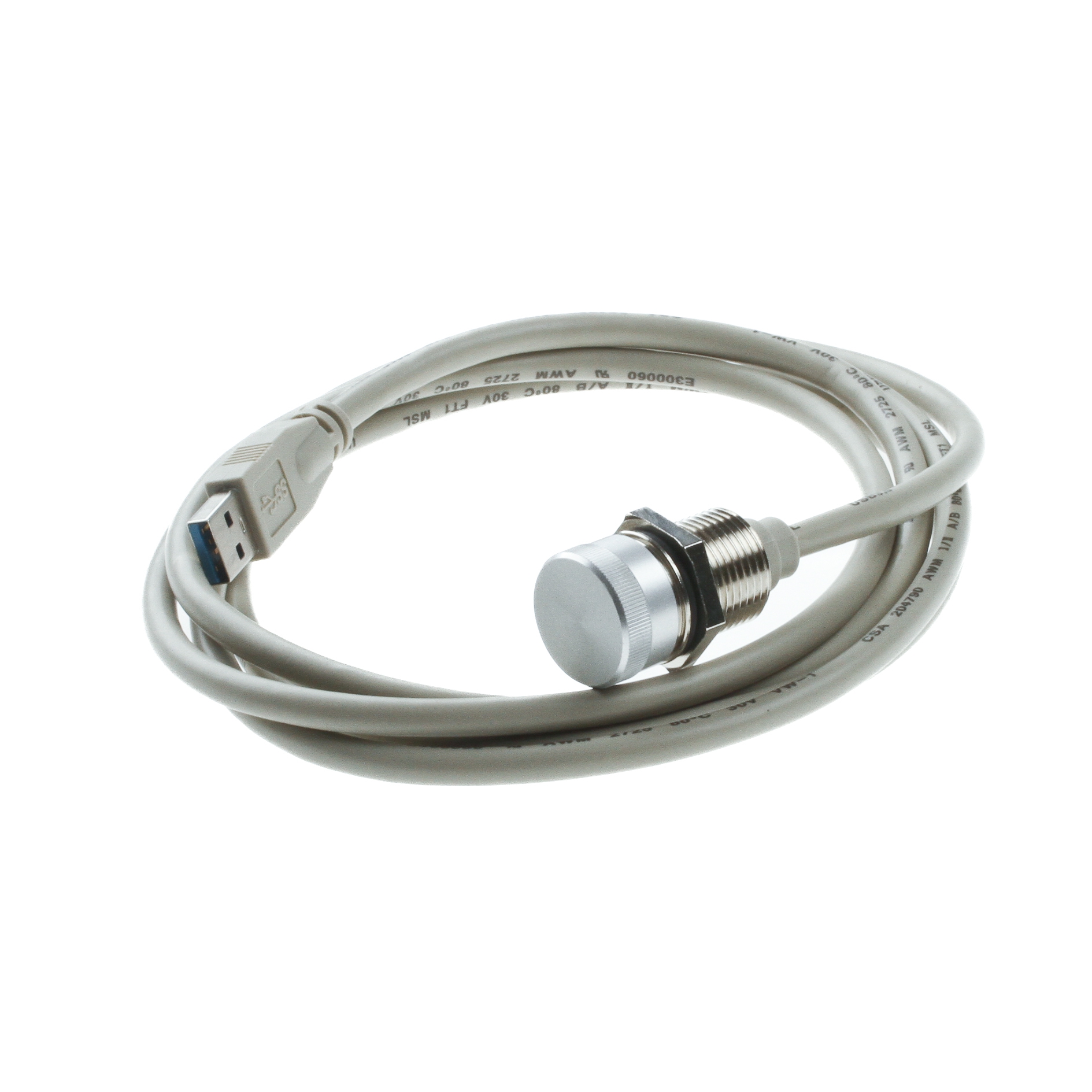 USB 2.0 panel mount cable with screw cap, seal for moisture and dust protection (IP67), internal cap holder (thin wire rope), USB type A female (metal housing) to USB type male, USB 2.0 compatible, length 2m