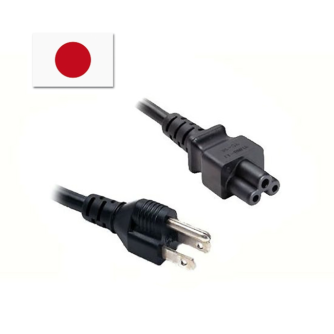 Notebook power cable for Japan, Japanese plug to 3-pin Notebook plug C5 (3 circular contacts arranged as V), 3G x 0.75mm², black