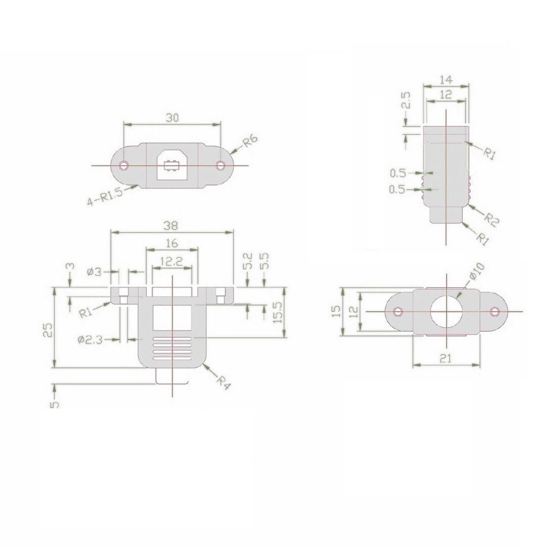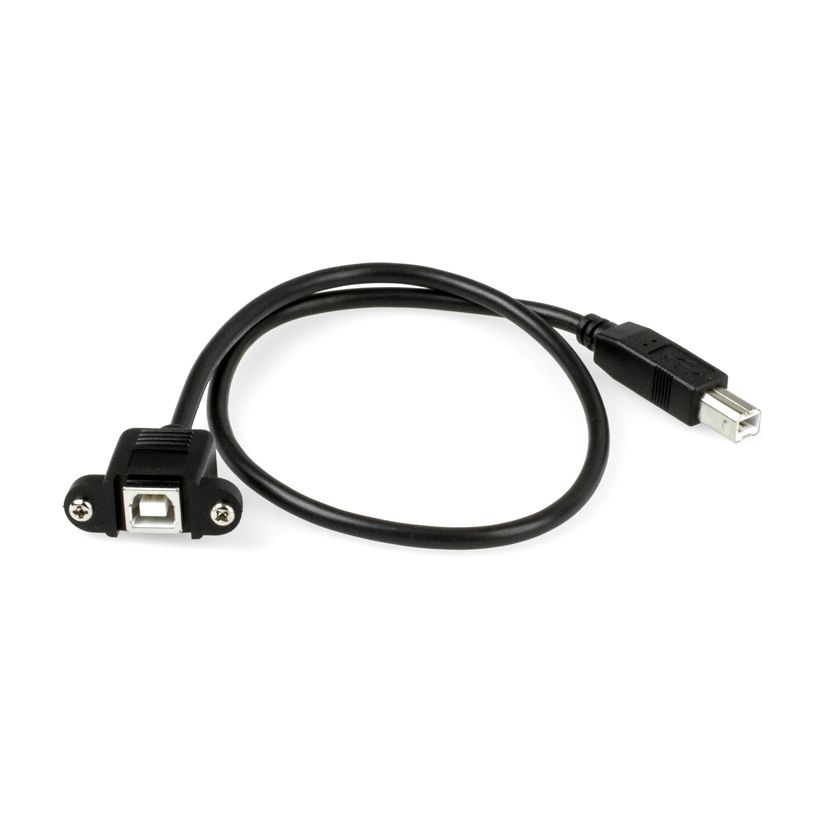Panel mount USB 2.0 cable, B female with screws to B male, 50cm