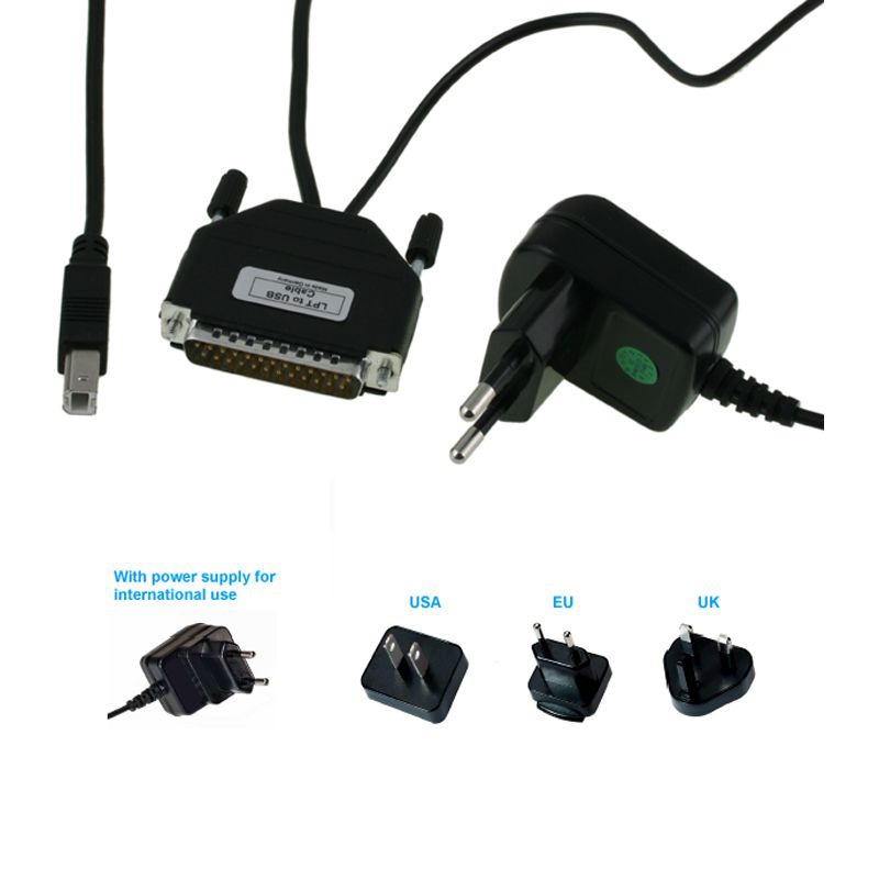 Parallel to USB Reverse Adapter: DB25 male to USB B male, LPT2USB, international version