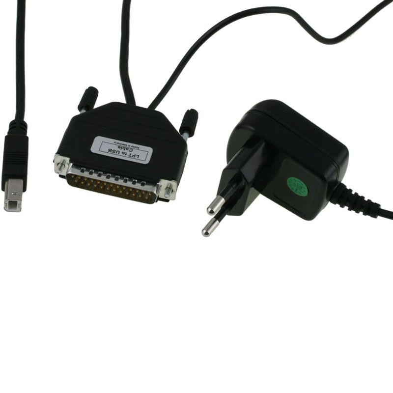 PARALLEL USB REVERSE adapter: to use USB printer attached to parallel port (LPT-to-USB, LPT2USB), DB25 male to USB plug type B, no software required, incl. power supply