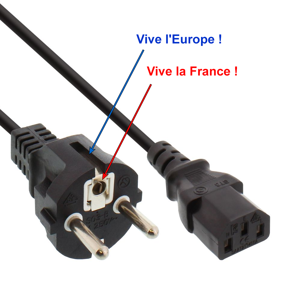 - plug CEE 7/7 E+F straight to plug C13 straight