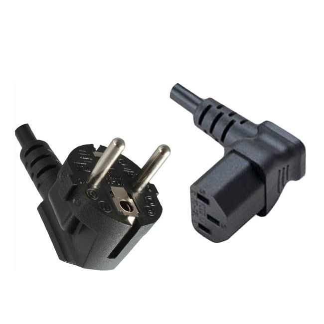 Power cord for Europe (e.g. Germany and France), 180cm, both plugs 90° angled (device plug C13 angled DOWN), 3G x 0,75mm², black, material H05VV-F