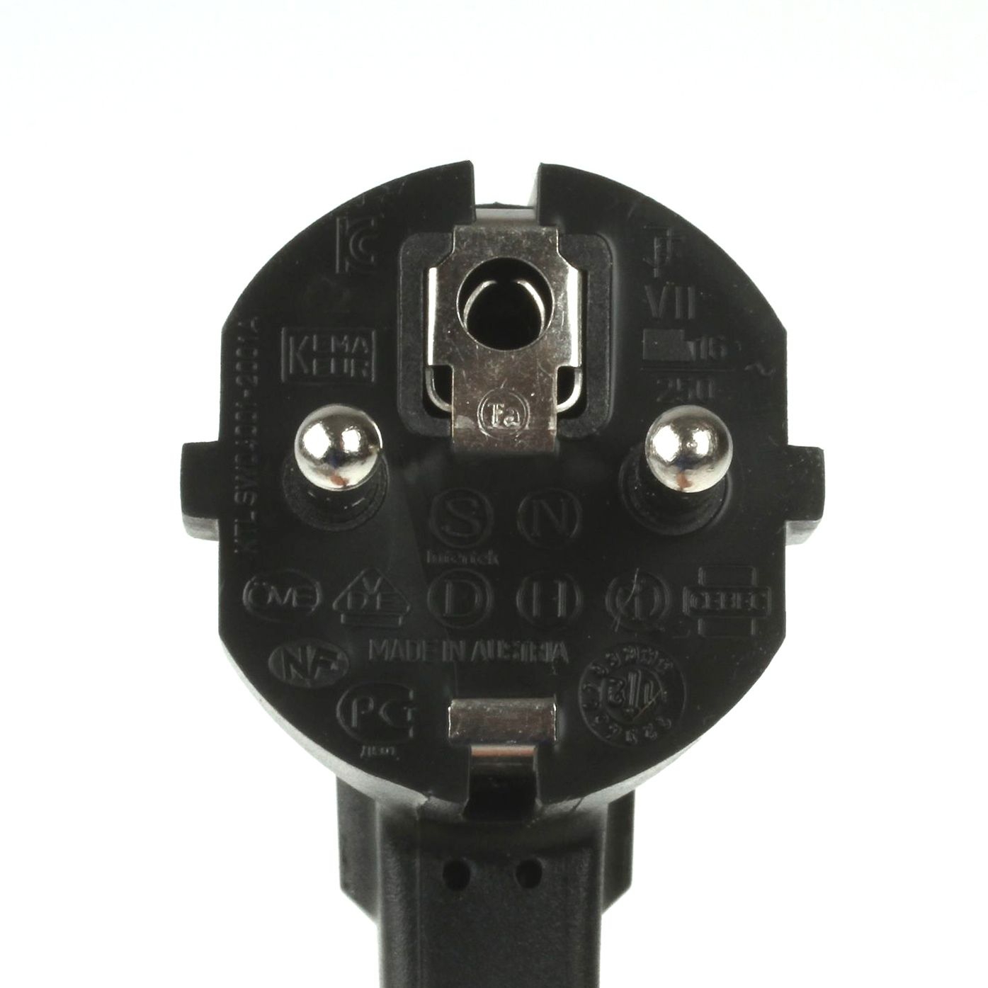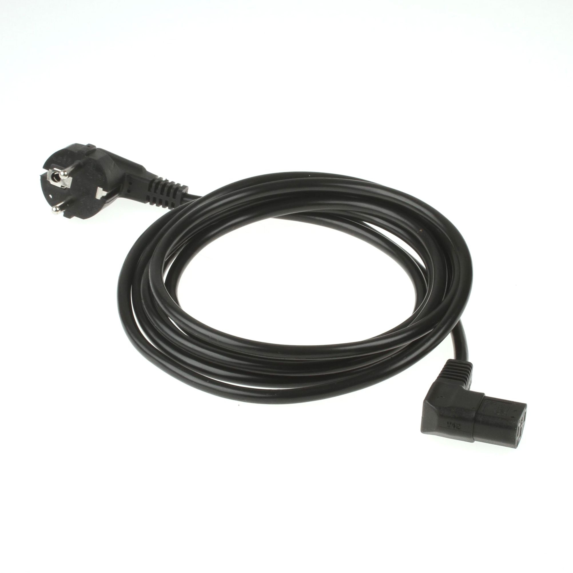 Power cord for Europe (e.g. Germany and France), 3m, both plugs 90° angled (device plug C13 angled RIGHT), 3G x 1mm², black