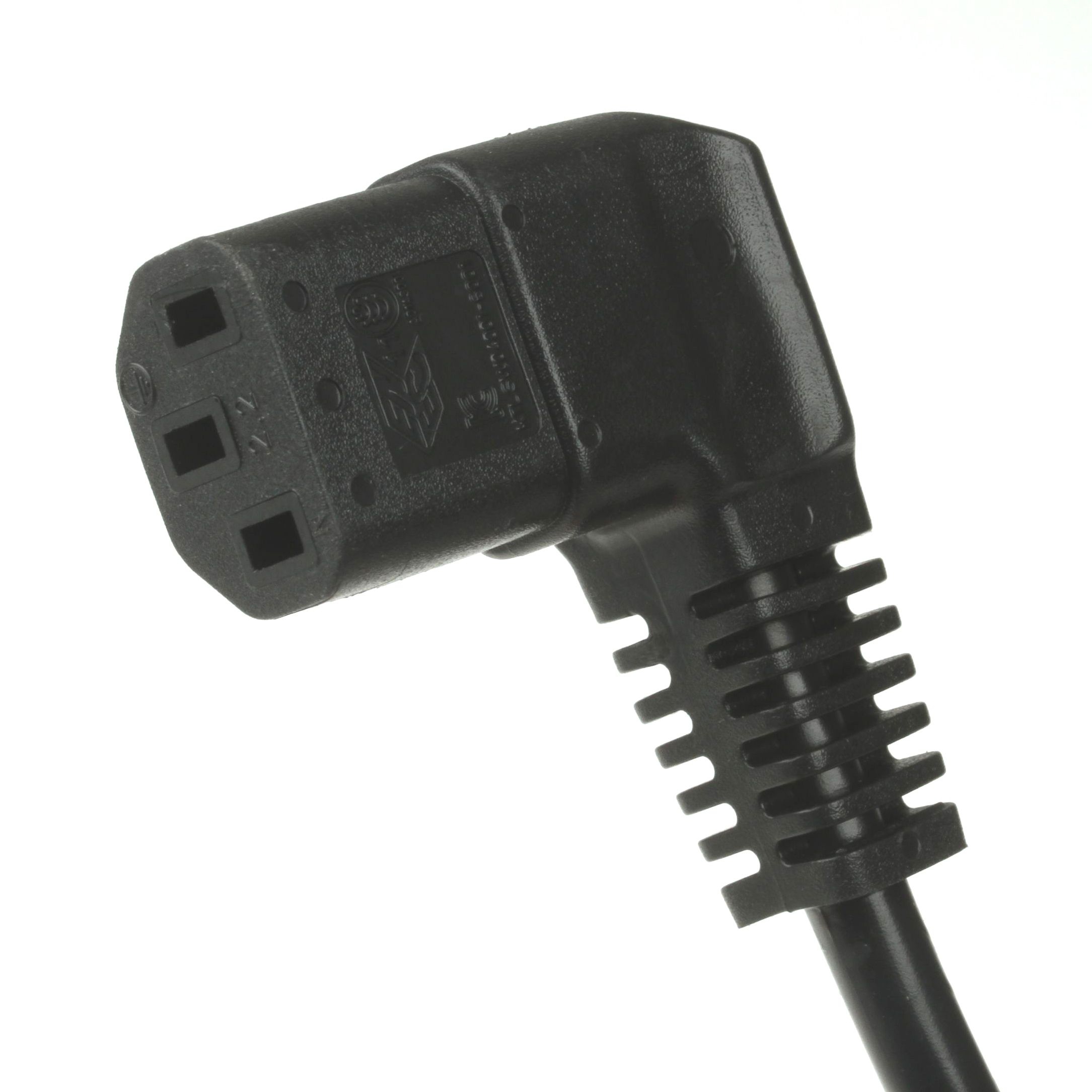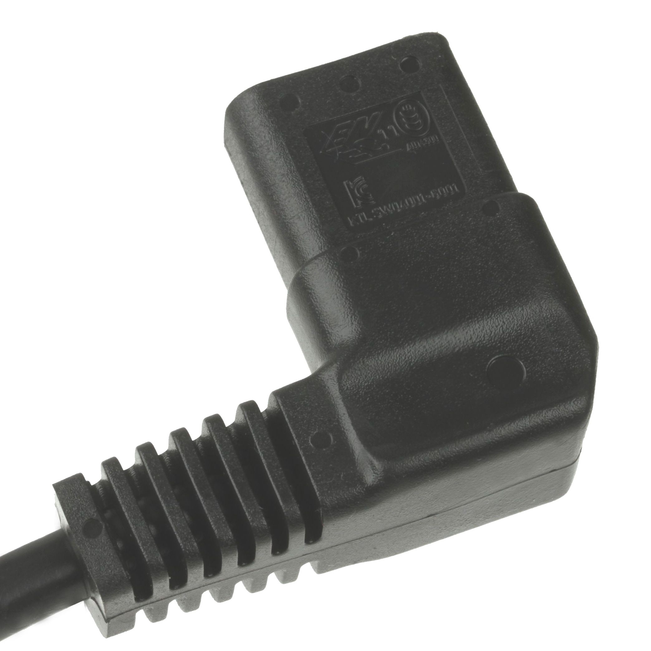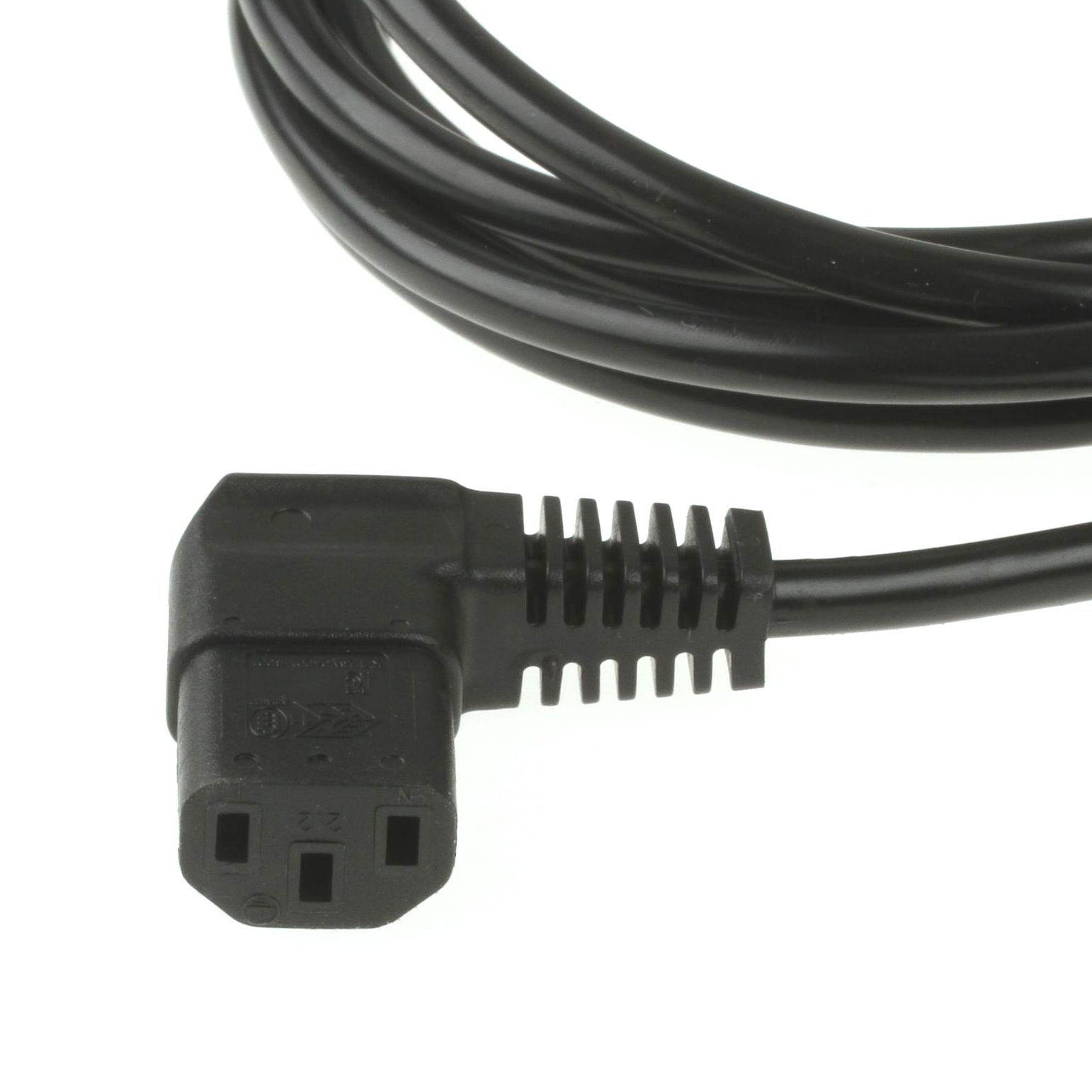 Power cord for Europe (e.g. Germany and France), 5m, both plugs 90° angled (device plug C13 angled RIGHT), 3G x 1mm², black