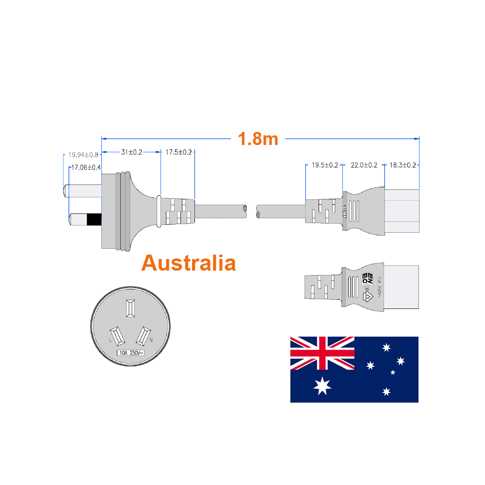 Power cord Power cable Mains lead line AUSTRALIA 180cm