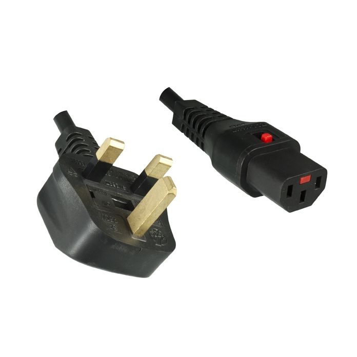 Power cord for United Kingdom / Ireland locking type, 1.8m, 240V, BSI or ASTA, 3x 18 AWG, fuse included 5 Amp, IEC 60320 w/C13, black, RoHS