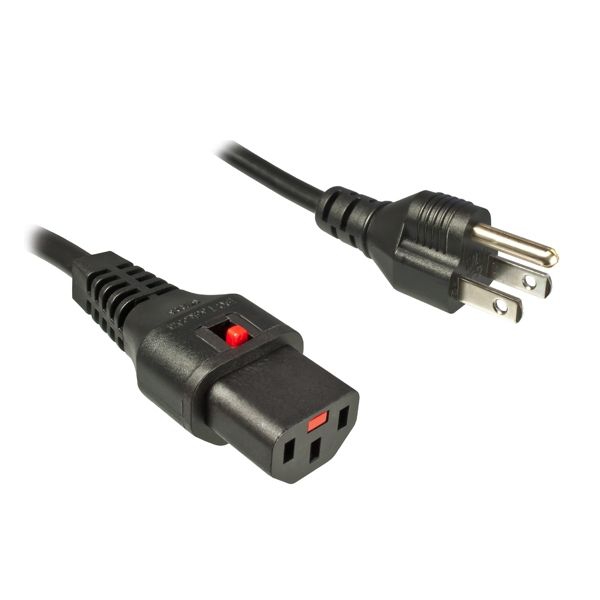 Power Cord, USA (NEMA 5-15P) to Kettle plug IEC60320-C13 with built in automatic connector lock, black, 2m