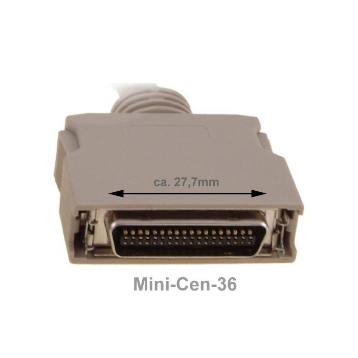 Parallel printer cable, about 5m, type: MINI-CENTRONICS, DB25 male to HPCen36 male (half pitch C36 male, mini CEN36, IEEE-1284C), spec. for EPP (Enhanced Parallel Port), bidirectional, twisted pairs, double shielded, e.g. for HP 1100, HP 3150 or Officejet