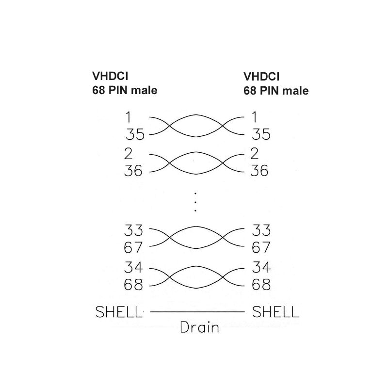 - VHDCI plug male with 68 pins on both sides (pitch 0.8mm)