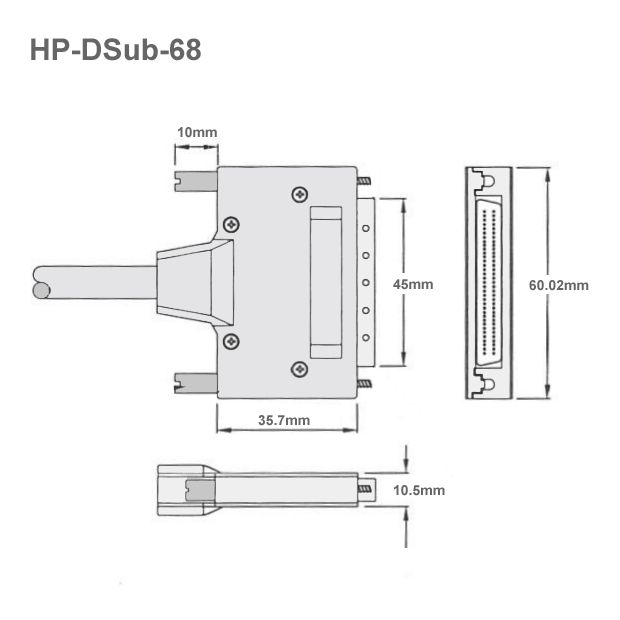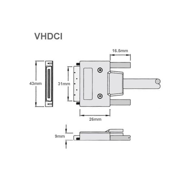 Special SCSI cable with VHDCI male (small plug, 68pin) to HP-DB68 male (68pin), 5m, High End UL cable material, metal plugs with screws, e.g. for data acquisition cards, LVD 320 MByte/s or WIDE-SCSI