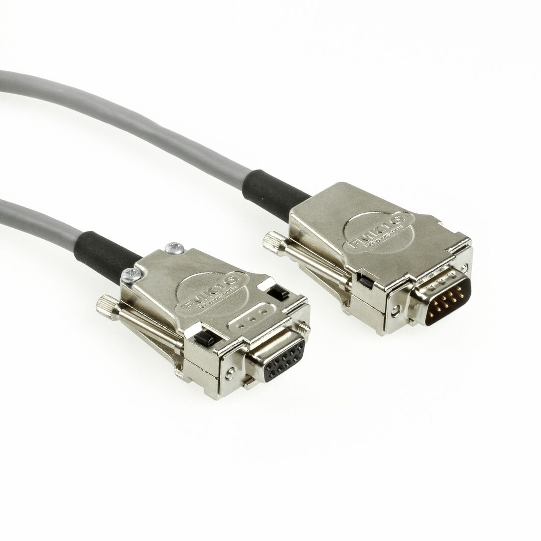 Serial cable DB9 male to DB9 female, 30m, metal plugs