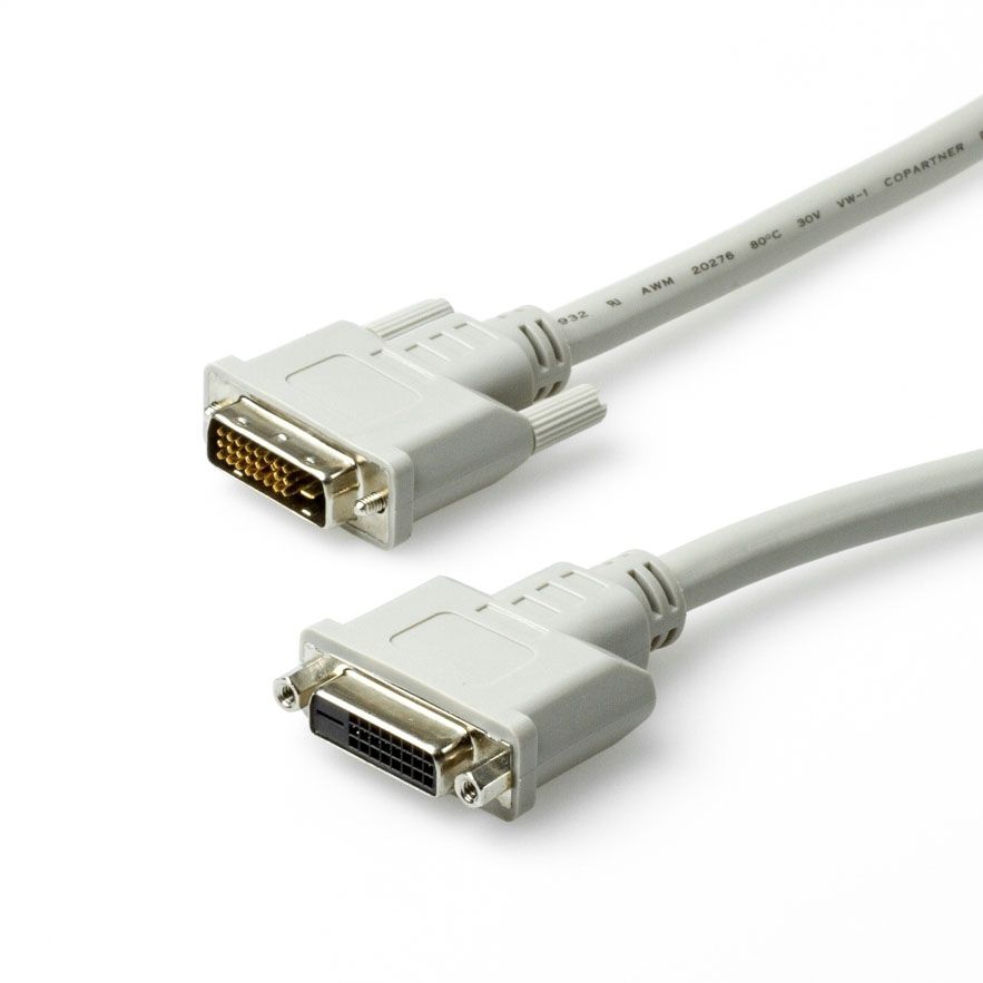 DVI extension cable 50cm, DVI-D DUAL LINK (digital only), plug DVI 24+1 male to female, colour: grey
