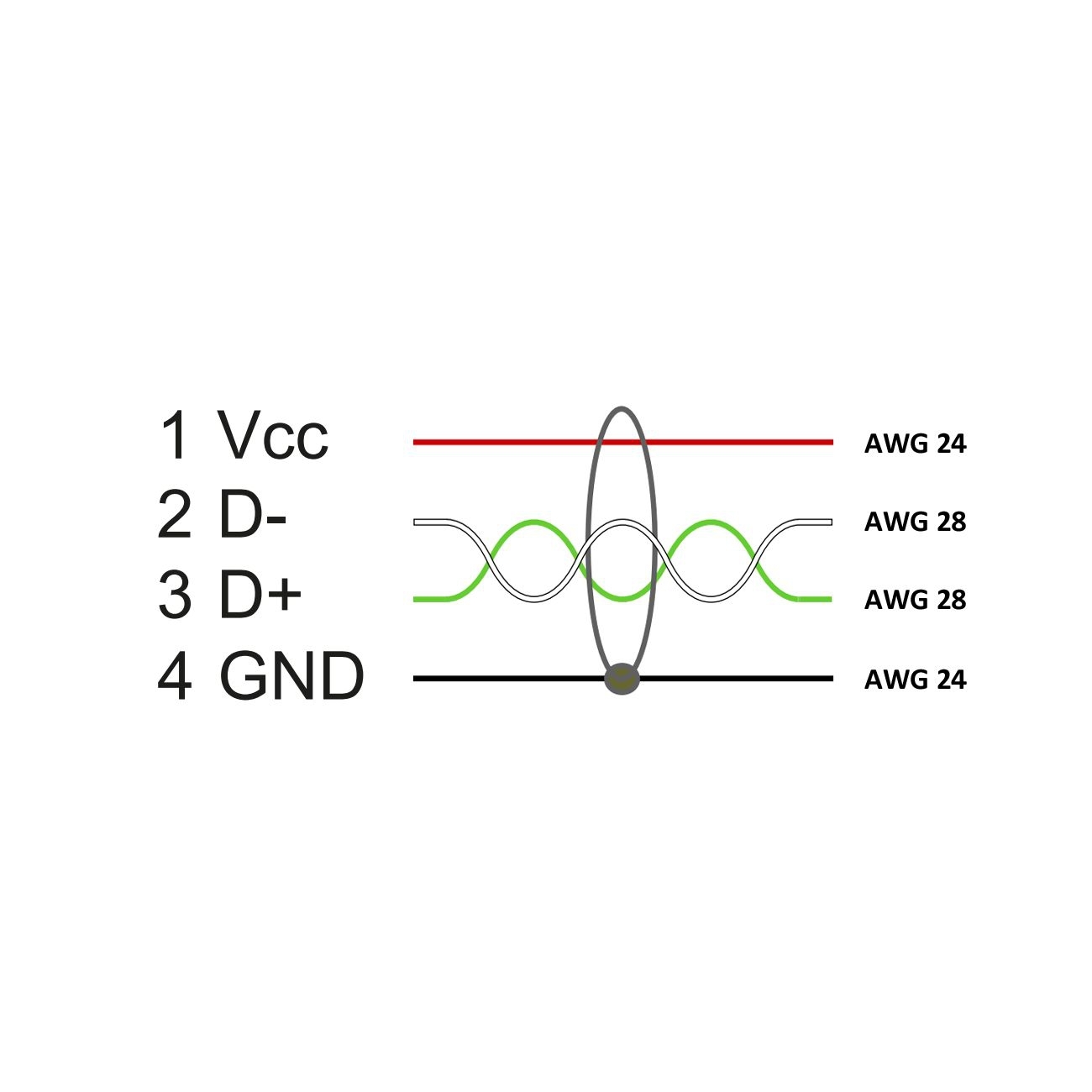 Short USB 2.0 cable AB PREMIUM quality, black, 50cm
