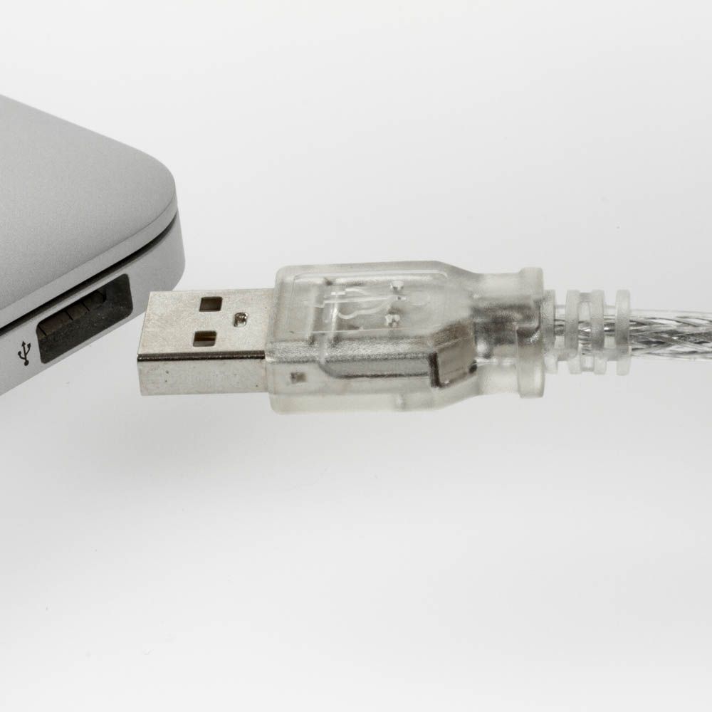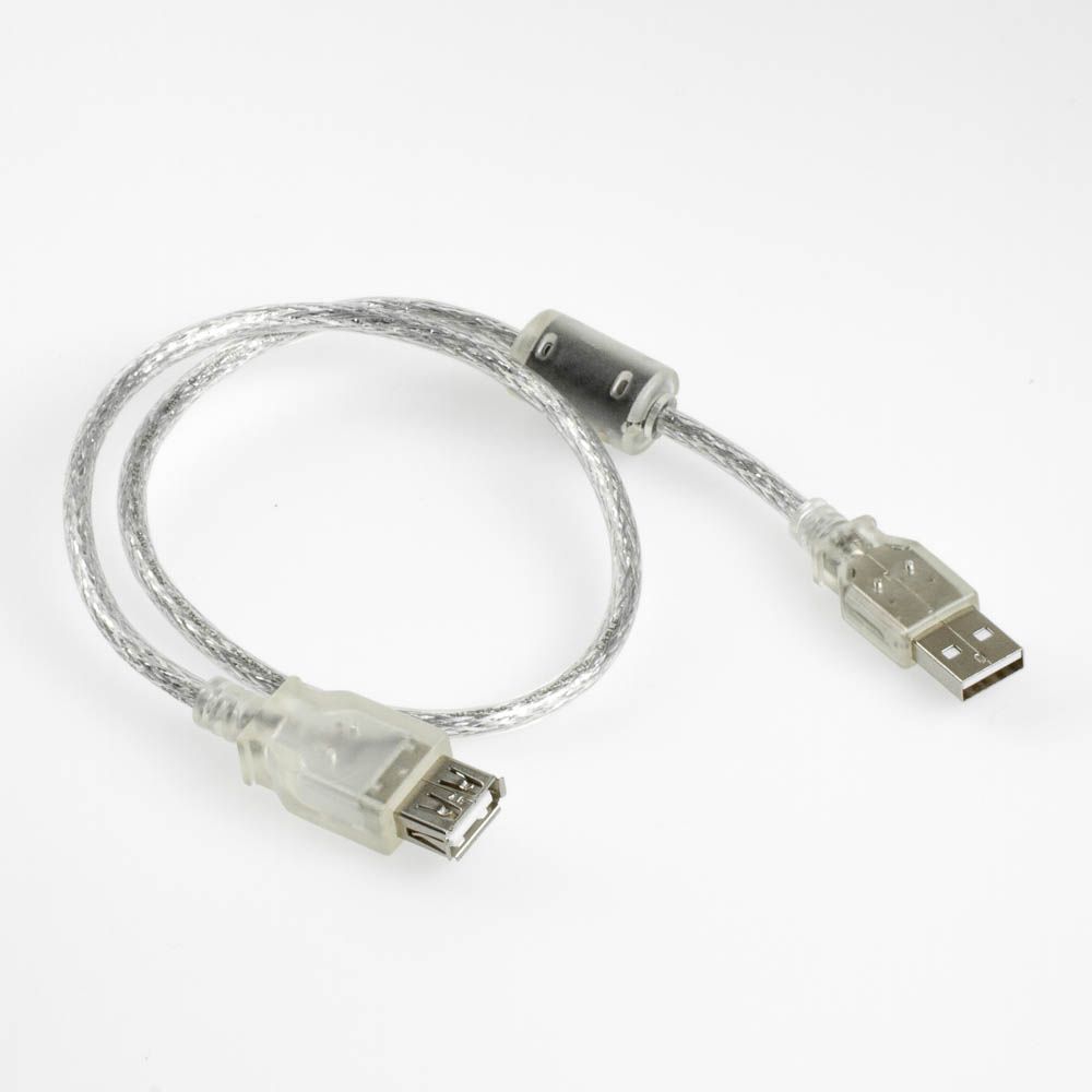 USB 2.0 extension cable, type A male to type A female, with ferrit core 50cm, colour: translucent silver