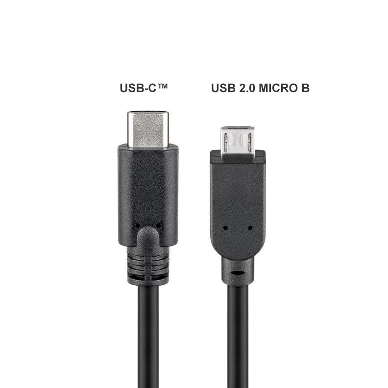 Short USB cable Type-C™ male to USB 2.0 Micro B male 20cm, black
