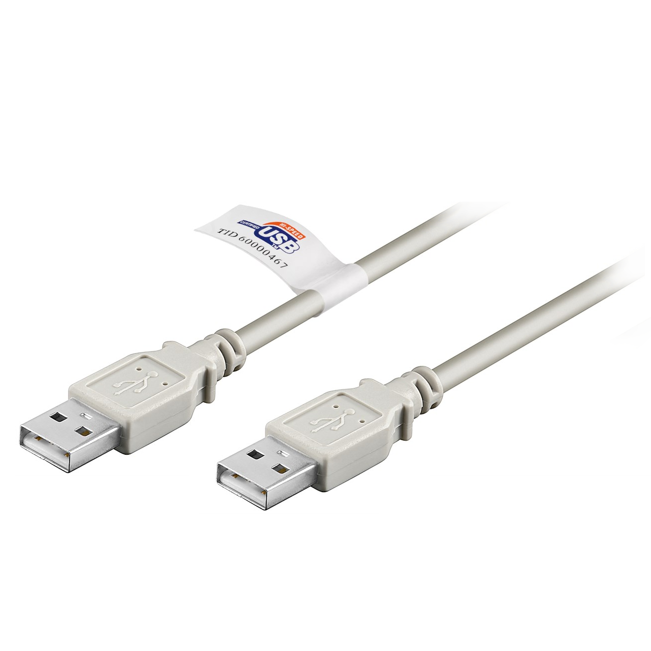 Certified USB 2.0 cable with 2x plug A (www.usb.org, TID no. 60000467), 2m, AWG28/1P AWG24/2C, max. 480 Mbps, grey